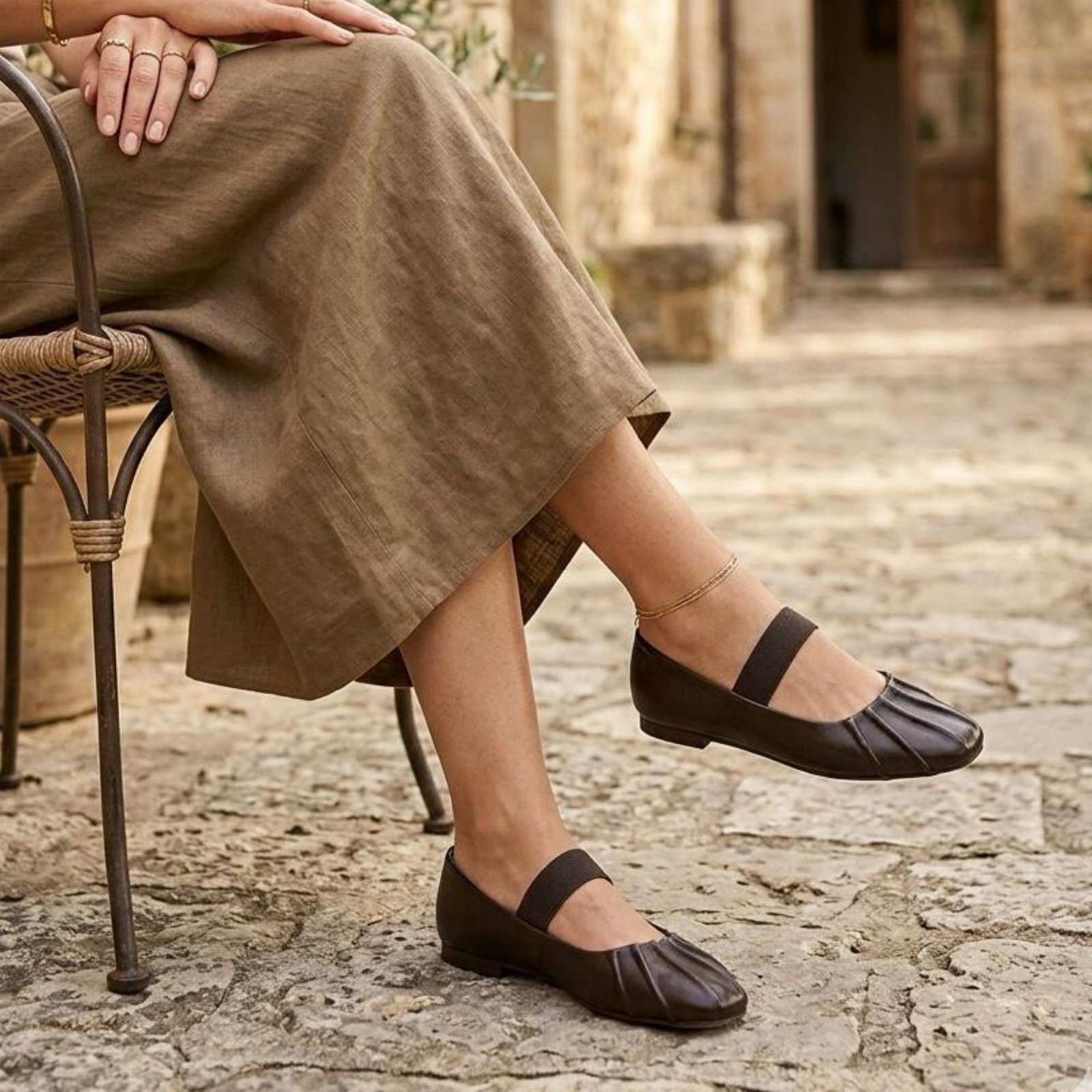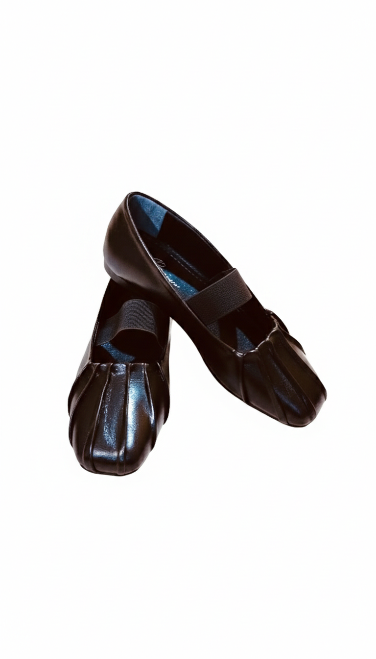 Modern kare burun tasarımı ve lastik bant detayıyla konforu şıklıkla buluşturan siyah babet modeli.